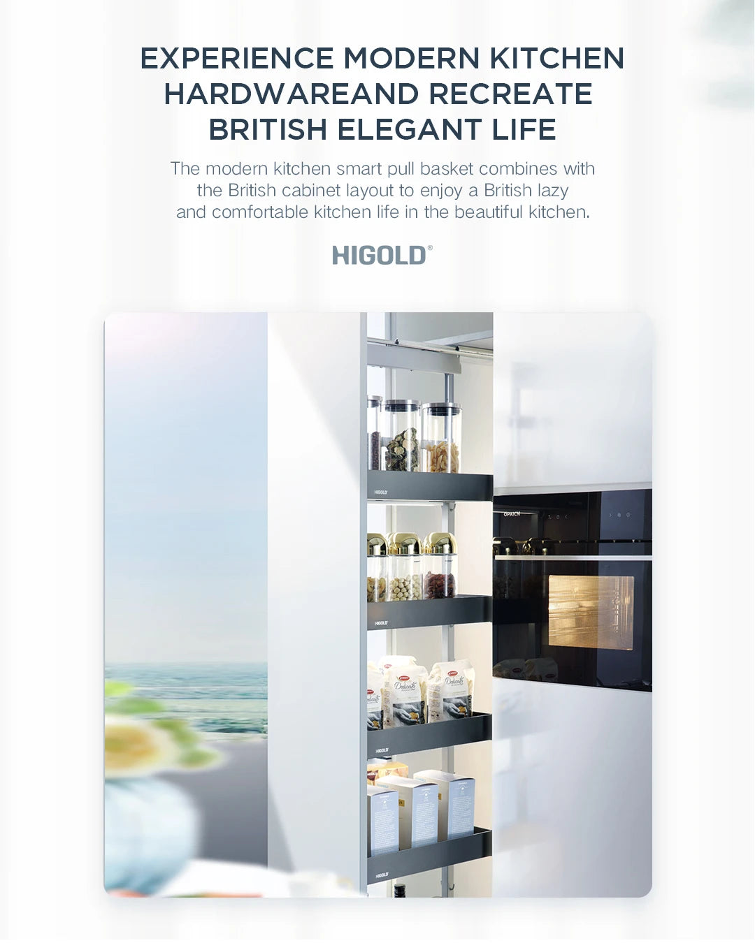 The Shearer PRO pull out pantry kitchen storage from Higold adopts aviation-level space aluminum construction and quality fluorocarbon surface coating to ensure a durable and non-corrosive pantry unit. It maximises your kitchen space and provides uninterrupted view and access to different items. Easily configure this pull out pantry with the adjustable height and moveable trays—making it the latest in orderly kitchen storage.