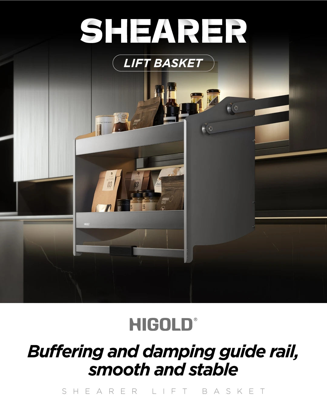 The SHEARER pull down wall cabinet storage from Higold brings warmth into the busiest part of your home with the premium grey finish, which can also be a softer alternative to industrial black kitchen storage. It's built with superior quality aerospace-grade aluminium to ensure anti-corrosion, scratch-resistant, and long-lasting use.
