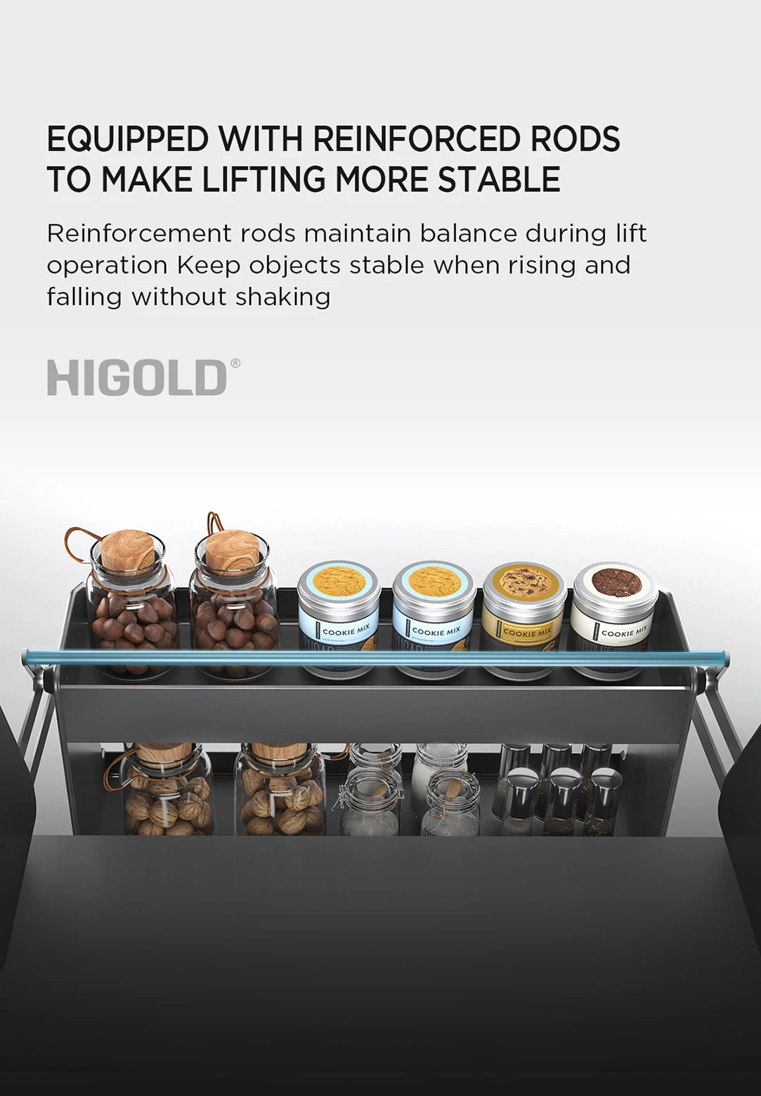 The SHEARER Nebula pull down wall cabinet lift system is one of Higold's patented storage solution designs that will provide you with a more comfortable and quality kitchen life experience. It's built with superior quality aerospace-grade aluminium to ensure anti-corrosion, scratch-resistant, and long-lasting use.